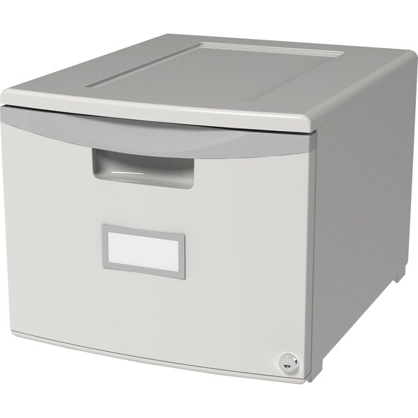 Functional and lightweight, this filing drawer is the perfect storage solution for those in need of professional filing. The durable polypropylene construction allows this drawer to be stackable up to six units high for space-saving organization. Built-in label holder offers a convenient way to quickly identify your stored contents. Lockable drawers prevent unauthorized access to keep your files and documents safely contained. Plus, its durable design resists scratches, moisture and rust for long-lasting organization. 18" filing drawer is designed to hold letter-size or legal-size hanging file folders (sold separately).