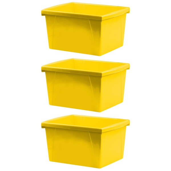 Storage Bin, Polypropylene, Yellow, 3 PK