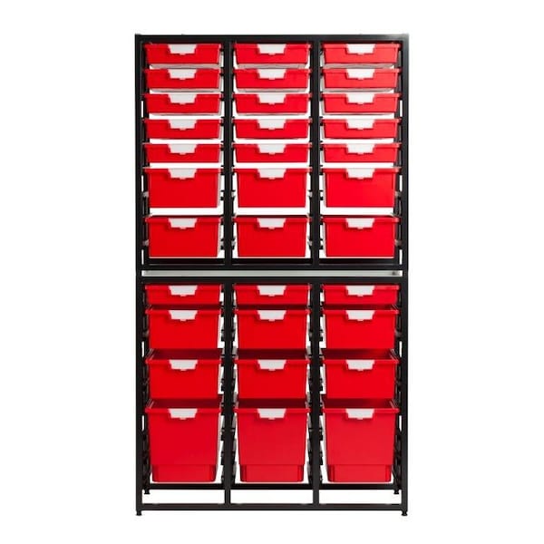 Unit frame finish is Black, lid finish is Gray and supplied with 21 x Primary Red-3” Slim Line Trays, 12 x Primary Red-6” Slim Line Trays and 3 x Primary Red-12” Slim Line Trays