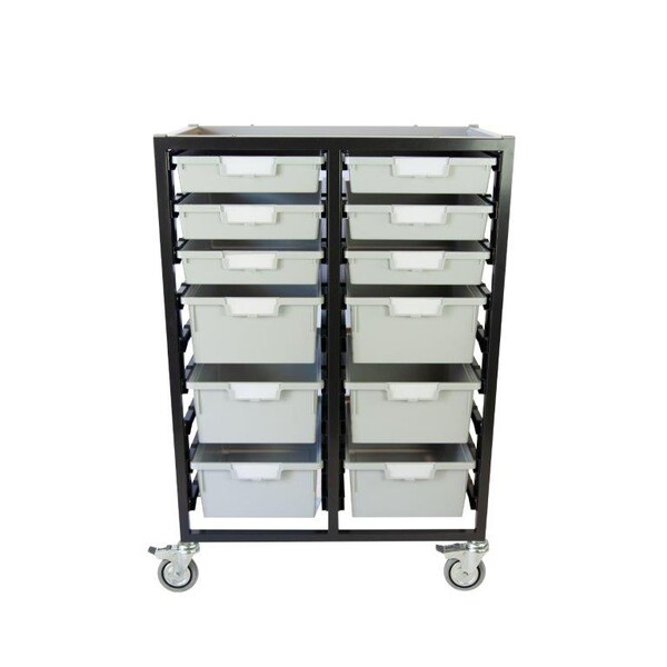Swift Tower - Slim Line - Mobile Series Cart in Black with 6 x LIght Gray-3" Trays and 6 x Light Gray-6" Trays