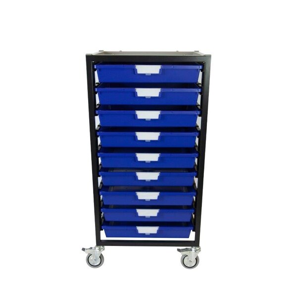 Nimble II Tower - Wide Line - Mobile Series Cart in Black with 9 x Primary Blue -3" Wide Line Trays