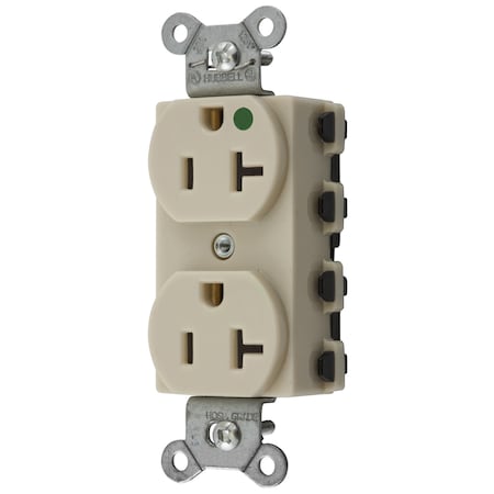 Duplex Straight Blade Receptacle, 5-20R, 20 A, 125V AC, 2 Pole, 3 Wire, Surface Mount, Grounded