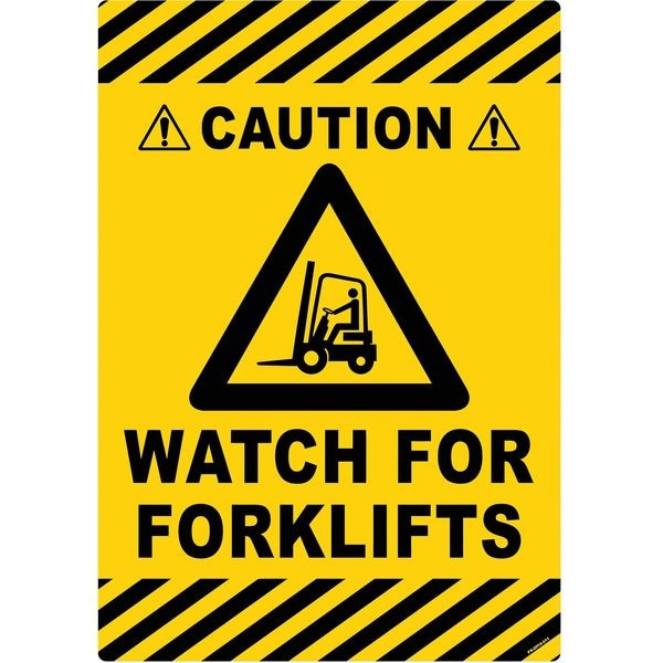 Floor Sign, Vertical Rectangle, Number of Printed Sides 1, English, Sign Format Other Format, Sign Legend Caution, Watch For Forklifts, Sign Legend Background Color Yellow, Sign Legend Style Symbol and Text, Sign Legend Character Height 1 3/4 in