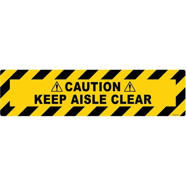 Floor Sign, Horizontal Rectangle, Number of Printed Sides 1, English, Sign Legend Caution, Keep Aisle Clear, Sign Legend Background Color Yellow, Sign Legend Style Symbol and Text, Sign Legend Character Height 1 1/4 in