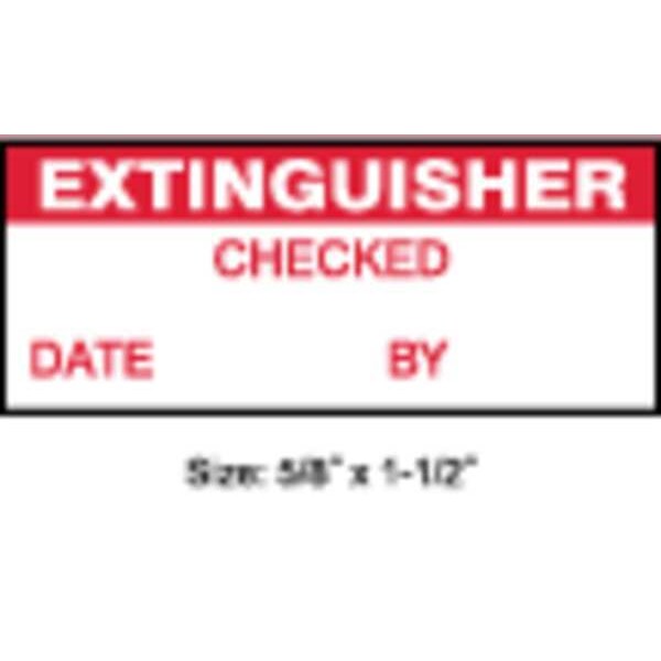 Inspection Label, Adhesive Adhesive, Adhesive Material Acrylic, Adhesive Type Permanent Adhesive, Label Color Red, White, Label Diameter Not Applicable, Label Height 5/8 in, Label Material Polyester, Label Shape Rectangle, Label Width 1 1/2 in, Language English, Number of Labels 350, Preprinted Images Red Header Stripe, Preprinted Legend By_______, Checked Date_______, Product Type Inspection Label, Subject Matter Maintenance, Indoor/Outdoor Usage Indoor, Resistance Properties Chemical-Resistant