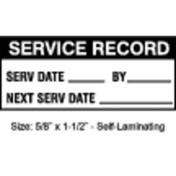 Maintenance Label, Adhesive Adhesive, Adhesive Material Acrylic, Adhesive Type Permanent Adhesive, Label Color Black, White, Label Diameter Not Applicable, Label Height 5/8 in, Label Material Polyester, Label Shape Rectangle, Label Width 1 1/2 in, Language English, Number of Labels 350, Preprinted Images Black Header Stripe, Preprinted Legend By_______, Next Serv Date_______, Serv Date_______, Product Type Maintenance Label, Subject Matter Service, Indoor/Outdoor Usage Indoor
