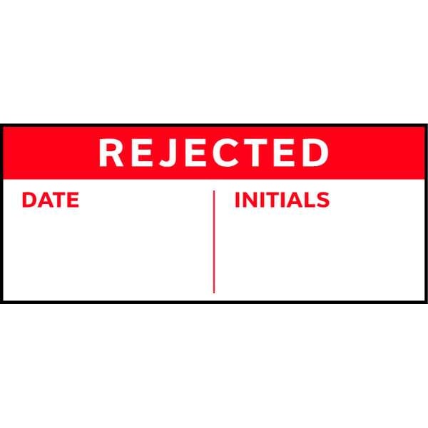 Inspection Label, Adhesive Adhesive, Adhesive Material Acrylic, Adhesive Type Permanent Adhesive, Label Color Red, White, Label Diameter Not Applicable, Label Height 5/8 in, Label Material Polyester, Label Shape Rectangle, Label Width 1 1/2 in, Language English, Number of Labels 350, Preprinted Images Red Header Stripe, Preprinted Legend Date_______Date_______, Product Type Inspection Label, Subject Matter Rejected, Indoor/Outdoor Usage Indoor, Resistance Properties Chemical-Resistant
