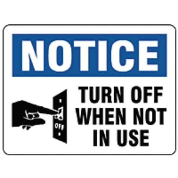 Label, Horizontal Rectangle, Number of Printed Sides 1, English, Sign Format ANSI/OSHA Format, Sign Legend Turn Off When Not In Use, Sign Legend Background Color White, Sign Legend Style Symbol and Text, Sign Legend Character Height 3/8 in, Package Quantity 10