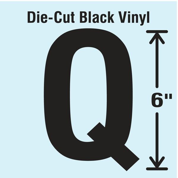 Letter Label, Adhesive Type Permanent Adhesive, Application General Identification, APWA Compliant Color No, Background Color Not Applicable, Character Color Black, Character Color Gradient Solid Color, Character Height 6 in, Character Outline Color Not Applicable, Character Type Letters, Characters Included Q, Die Cut Yes, Embossed No, Font Gothic, Includes 1 Pack, Indoor/Outdoor Usage Indoor/Outdoor, Letter Casing Uppercase, Material Vinyl, Meets USCG Registration Guidelines No
