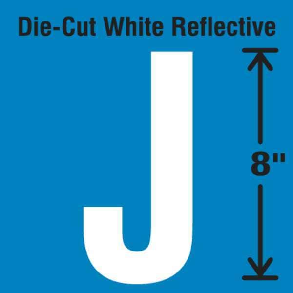 Letter Label, Adhesive Type Permanent Adhesive, Application General Identification, APWA Compliant Color No, Background Color Not Applicable, Character Color White, Character Color Gradient Solid Color, Character Height 8 in, Character Outline Color Not Applicable, Character Type Letters, Characters Included J, Die Cut Yes, Embossed No, Font Gothic, Includes 1 Pack, Indoor/Outdoor Usage Indoor/Outdoor, Letter Casing Uppercase, Material Vinyl, Meets USCG Registration Guidelines No