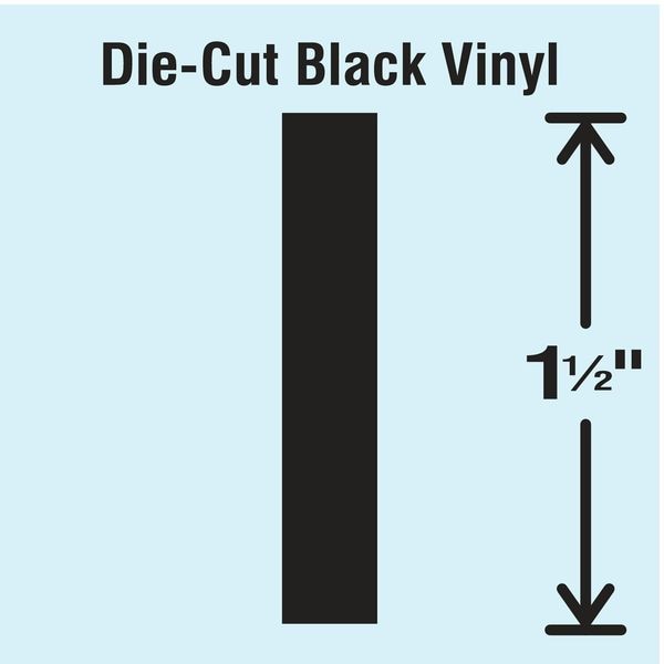 Letter Label, Adhesive Type Permanent Adhesive, Application General Identification, APWA Compliant Color No, Background Color Not Applicable, Character Color Black, Character Color Gradient Solid Color, Character Height 1 1/2 in, Character Outline Color Not Applicable, Character Type Letters, Characters Included I, Die Cut Yes, Embossed No, Font Gothic, Includes (10) Pack, Indoor/Outdoor Usage Indoor/Outdoor, Letter Casing Uppercase, Material Vinyl, Meets USCG Registration Guidelines No