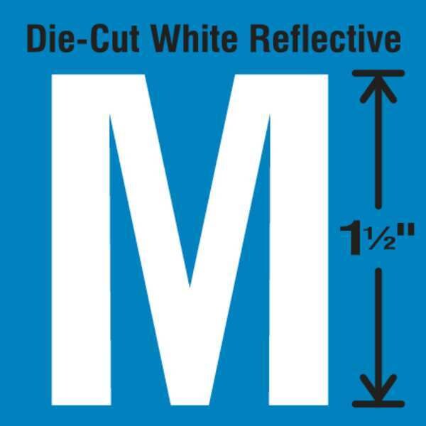 Letter Label, Adhesive Type Permanent Adhesive, Application General Identification, APWA Compliant Color No, Background Color Not Applicable, Character Color White, Character Color Gradient Solid Color, Character Height 1 1/2 in, Character Outline Color Not Applicable, Character Type Letters, Characters Included M, Die Cut Yes, Embossed No, Font Gothic, Includes (5) Pack, Indoor/Outdoor Usage Indoor/Outdoor, Letter Casing Uppercase, Material Vinyl, Meets USCG Registration Guidelines No