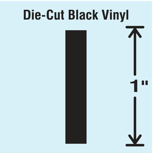 Letter Label, Adhesive Type Permanent Adhesive, Application General Identification, APWA Compliant Color No, Background Color Not Applicable, Character Color Black, Character Color Gradient Solid Color, Character Height 1 in, Character Outline Color Not Applicable, Character Type Letters, Characters Included I, Die Cut Yes, Embossed No, Font Gothic, Includes 1 Pack, Indoor/Outdoor Usage Indoor/Outdoor, Letter Casing Uppercase, Material Vinyl, Meets USCG Registration Guidelines No