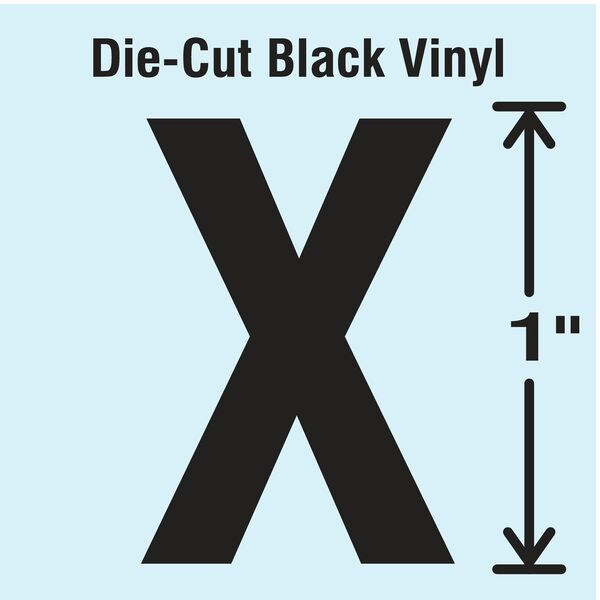 Letter Label, Adhesive Type Permanent Adhesive, Application General Identification, APWA Compliant Color No, Background Color Not Applicable, Character Color Black, Character Color Gradient Solid Color, Character Height 1 in, Character Outline Color Not Applicable, Character Type Letters, Characters Included X, Die Cut Yes, Embossed No, Font Gothic, Includes 1 Pack, Indoor/Outdoor Usage Indoor/Outdoor, Letter Casing Uppercase, Material Vinyl, Meets USCG Registration Guidelines No