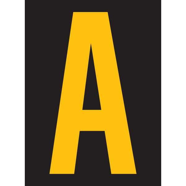 Letter Label, Adhesive Type Permanent Adhesive, Application General Identification, APWA Compliant Color No, Background Color Black, Character Color Yellow, Character Color Gradient Solid Color, Character Height 2 1/2 in, Character Outline Color Not Applicable, Character Type Letters, Characters Included A, Die Cut Yes, Embossed No, Font Swis 721 BT Bold Cn, Includes (25) Markers, Indoor/Outdoor Usage Indoor/Outdoor, Letter Casing Uppercase, Material Vinyl, Meets USCG Registration Guidelines No