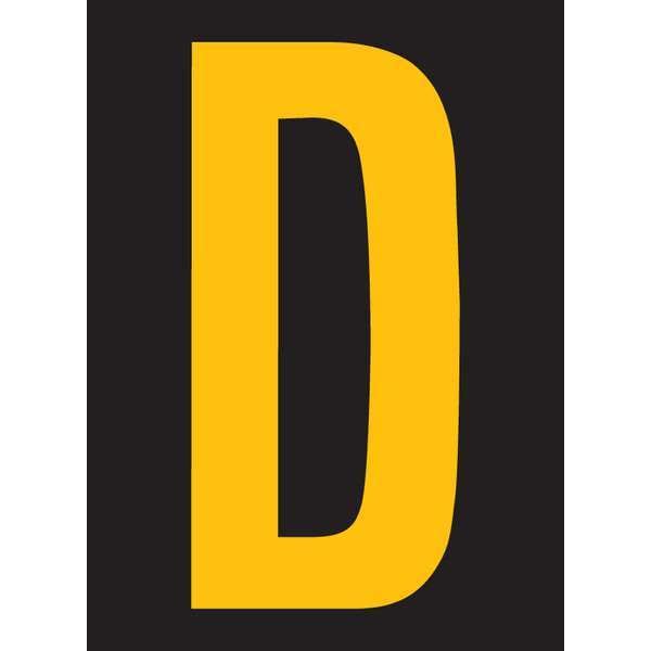 Letter Label, Adhesive Type Permanent Adhesive, Application General Identification, APWA Compliant Color No, Background Color Black, Character Color Yellow, Character Color Gradient Solid Color, Character Height 2 1/2 in, Character Outline Color Not Applicable, Character Type Letters, Characters Included D, Die Cut Yes, Embossed No, Font Swis 721 BT Bold Cn, Includes (25) Markers, Indoor/Outdoor Usage Indoor/Outdoor, Letter Casing Uppercase, Material Vinyl, Meets USCG Registration Guidelines No