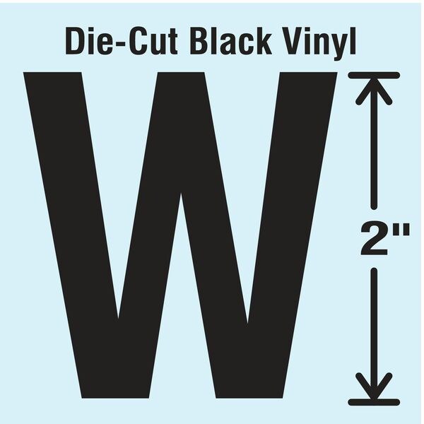 Letter Label, Adhesive Type Permanent Adhesive, Application General Identification, APWA Compliant Color No, Background Color Not Applicable, Character Color Black, Character Color Gradient Solid Color, Character Height 2 in, Character Outline Color Not Applicable, Character Type Letters, Characters Included W, Die Cut Yes, Embossed No, Font Gothic, Includes (10) Pack, Indoor/Outdoor Usage Indoor/Outdoor, Letter Casing Uppercase, Material Vinyl, Meets USCG Registration Guidelines No