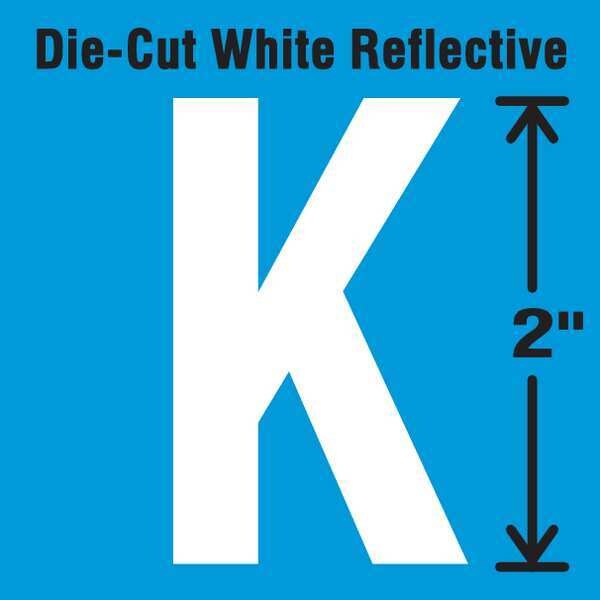 Letter Label, Adhesive Type Permanent Adhesive, Application General Identification, APWA Compliant Color No, Background Color Not Applicable, Character Color White, Character Color Gradient Solid Color, Character Height 2 in, Character Outline Color Not Applicable, Character Type Letters, Characters Included K, Die Cut Yes, Embossed No, Font Gothic, Includes (5) Pack, Indoor/Outdoor Usage Indoor/Outdoor, Letter Casing Uppercase, Material Vinyl, Meets USCG Registration Guidelines No