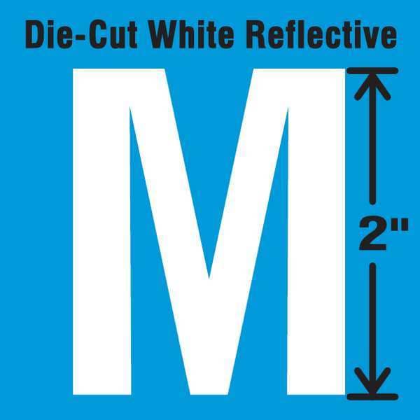 Letter Label, Adhesive Type Permanent Adhesive, Application General Identification, APWA Compliant Color No, Background Color Not Applicable, Character Color White, Character Color Gradient Solid Color, Character Height 2 in, Character Outline Color Not Applicable, Character Type Letters, Characters Included M, Die Cut Yes, Embossed No, Font Gothic, Includes (5) Pack, Indoor/Outdoor Usage Indoor/Outdoor, Letter Casing Uppercase, Material Vinyl, Meets USCG Registration Guidelines No