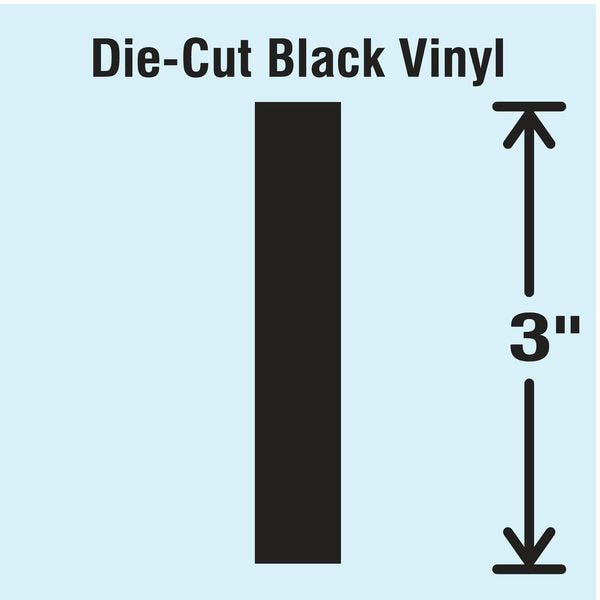 Letter Label, Adhesive Type Permanent Adhesive, Application General Identification, APWA Compliant Color No, Background Color Not Applicable, Character Color Black, Character Color Gradient Solid Color, Character Height 3 in, Character Outline Color Not Applicable, Character Type Letters, Characters Included I, Die Cut Yes, Embossed No, Font Gothic, Includes (10) Pack, Indoor/Outdoor Usage Indoor/Outdoor, Letter Casing Uppercase, Material Vinyl, Meets USCG Registration Guidelines No