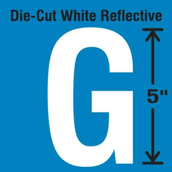 Letter Label, Adhesive Type Permanent Adhesive, Application General Identification, APWA Compliant Color No, Background Color Not Applicable, Character Color White, Character Color Gradient Solid Color, Character Height 5 in, Character Outline Color Not Applicable, Character Type Letters, Characters Included G, Die Cut Yes, Embossed No, Font Gothic, Includes (5) Pack, Indoor/Outdoor Usage Indoor/Outdoor, Letter Casing Uppercase, Material Vinyl, Meets USCG Registration Guidelines No