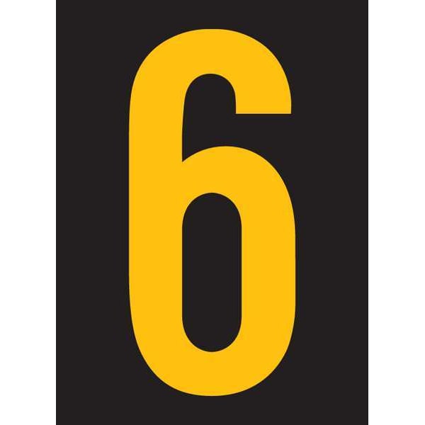 Number Label, Adhesive Type Permanent Adhesive, Application General Identification, APWA Compliant Color No, Background Color Black, Character Color Yellow, Character Color Gradient Solid Color, Character Height 2 1/2 in, Character Outline Color Not Applicable, Character Type Numbers, Characters Included 6 or 9, Die Cut Yes, Embossed No, Font Swis 721 BT Bold Cn, Includes (25) Markers, Indoor/Outdoor Usage Indoor/Outdoor, Letter Casing Uppercase, Material Vinyl