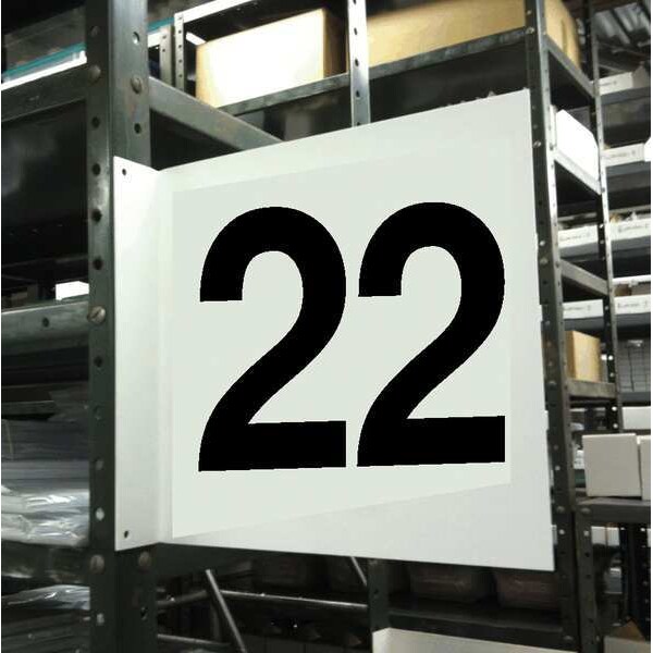 Projecting Aisle Sign, Square, Number of Printed Sides 2, English, Sign Legend 22, Sign Legend Background Color White, Sign Legend Style Text, Sign Legend Character Height 7 3/4 in