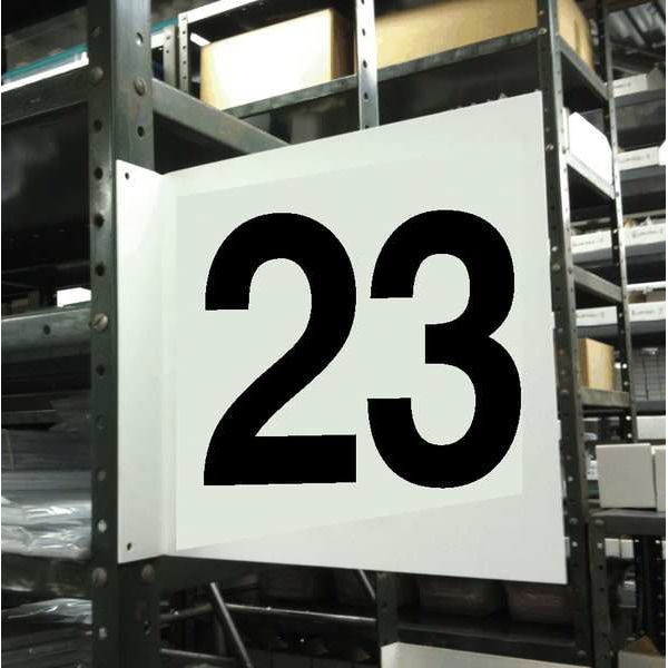 Projecting Aisle Sign, Square, Number of Printed Sides 2, English, Sign Legend 23, Sign Legend Background Color White, Sign Legend Style Text, Sign Legend Character Height 7 3/4 in