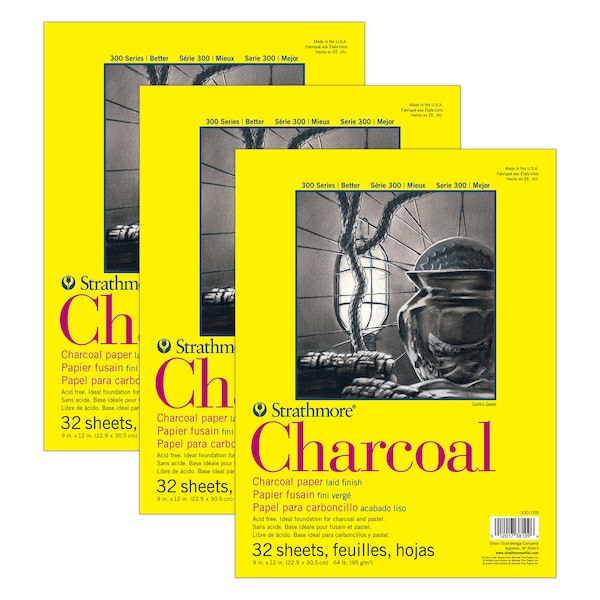 The Strathmore 300 Series Charcoal Pad contains a natural white paper with a traditional laid finish. An ideal foundation for messier mediums, this pad provides a strong surface suitable for charcoals, oil pastels, crayons, & more. The Strathmore 300 Series Charcoal Pad is perfect for artists of all levels & will help bring your creations come to life. The history of Strathmore Paper Company began on St. Patrick's Day in 1892 when its founder, Horace Moses, opened the Mittineague Paper Mill in West Springfield, MA. Strathmore has been a leading supplier of fine art papers for 130 years & founded with the belief that better paper makes better art. Strathmore provides artists of all levels with one of the widest ranges of quality surfaces for producing beautiful works of art, no matter the choice of medium. Listening to the needs of artists & providing inspiration, education, & innovating new products is at the core of what matters to Strathmore. The Strathmore 300 Series provides art students & intermediate hobbyists a range of better quality paper for quick studies, technical practice & final pieces in art class or at home. Including a wide variety of surface types, artists working with watercolor paint, acrylic paint, oil paint, pastel, colored pencil, charcoal, marker, pen, ink & more have a curated pad customized for their needs. Trusted by art teachers & affordable for parents & students, the 300 Series is the best way to help build confidence in intermediate artists! Sold as a pack of 3.