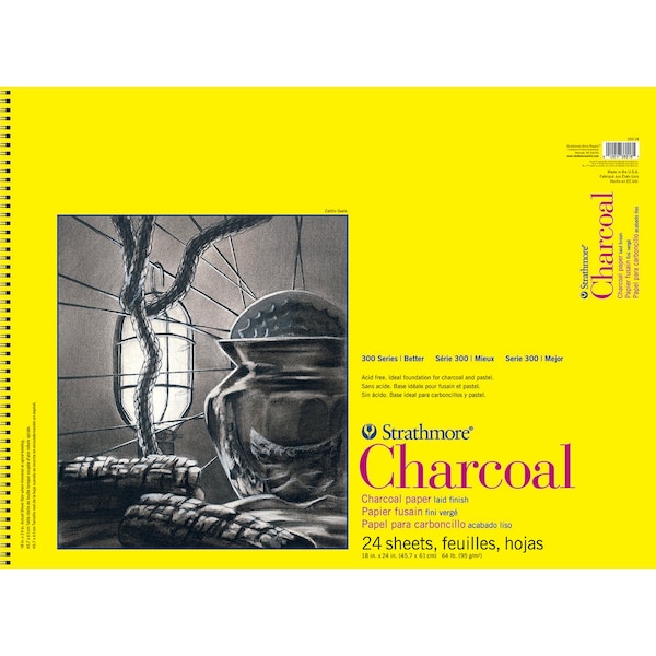 The Strathmore 300 Series Charcoal Pad contains a natural white paper with a traditional laid finish. An ideal foundation for messier mediums, this pad provides a strong surface suitable for charcoals, oil pastels, crayons, & more. The Strathmore 300 Series Charcoal Pad is perfect for artists of all levels & will help bring your creations come to life. The history of Strathmore Paper Company began on St. Patrick's Day in 1892 when its founder, Horace Moses, opened the Mittineague Paper Mill in West Springfield, MA. Strathmore has been a leading supplier of fine art papers for 130 years & founded with the belief that better paper makes better art. Strathmore provides artists of all levels with one of the widest ranges of quality surfaces for producing beautiful works of art, no matter the choice of medium. Listening to the needs of artists & providing inspiration, education, & innovating new products is at the core of what matters to Strathmore. The Strathmore 300 Series provides art students & intermediate hobbyists a range of better quality paper for quick studies, technical practice & final pieces in art class or at home. Including a wide variety of surface types, artists working with watercolor paint, acrylic paint, oil paint, pastel, colored pencil, charcoal, marker, pen, ink & more have a curated pad customized for their needs. Trusted by art teachers & affordable for parents & students, the 300 Series is the best way to help build confidence in intermediate artists!