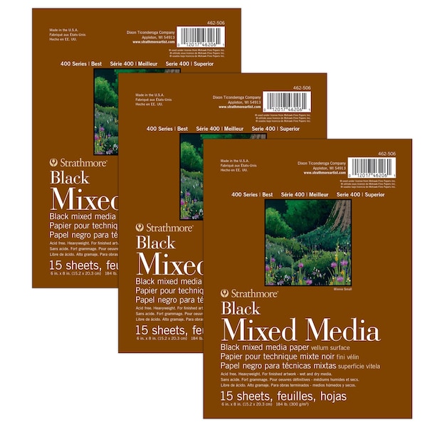 400 Series Mixed Media Pad, Black, Glue Binding, 15 Sheet, 6x8 inch, 3PK