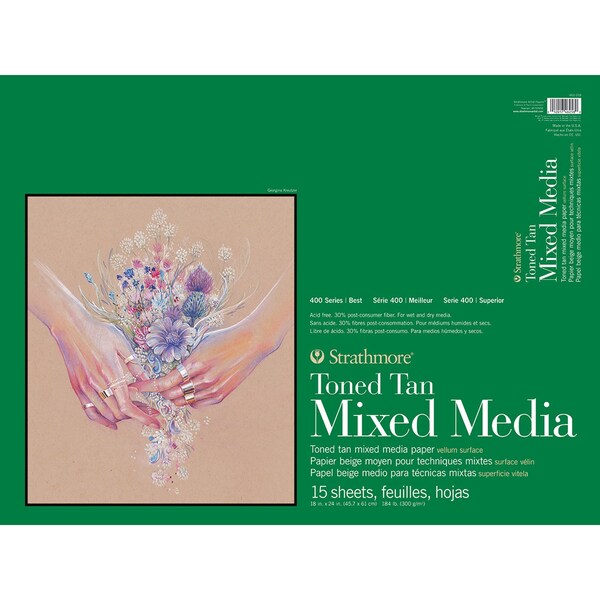 400 Series Mixed Media Pad, Toned Tan, Glue Binding, 15 Sheet, 18x24 inch