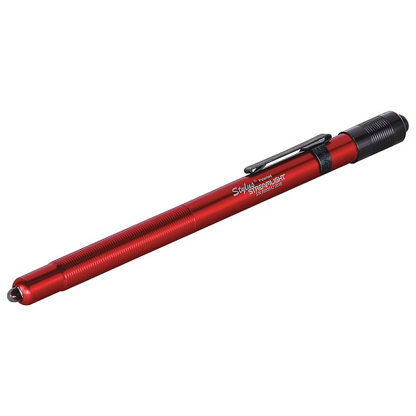 Penlight, Battery Chemistry Alkaline, Battery Size AAAA, Includes Batteries Yes, Number of Batteries 3, Body Color Red, Body Material Aluminum, Lighting Technology LED, Number of Light Output Modes 1, Maximum Beam Distance 24 m, Maximum Brightness 11 lm, Weight with Batteries 1.1 oz, Includes Charger No, Beam Color White, Includes Secondary Light No, Hazardous Location Specification Not Applicable, IP Rating IPX4, Mount Type Clip, Series Stylus, Special Operating Modes No Special Light Output