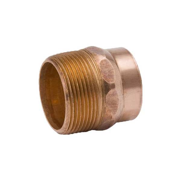 Sweat Fitting Adapter, Application Air, Potable Water, Fitting Side A Connection Type Cup, Fitting Side B Connection Type MNPT, Fitting Side A Copper Tube Size 1 1/2 in, Fitting Material Wrot Copper, Fitting Side B Pipe Size 1 1/2 in, Fitting Side A Tube Outer Diameter 1 5/8 in, Fitting Side B Tube Outer Diameter 1 1/2 in, Maximum Operating Pressure 408 psi @ 100 Degrees F, Maximum Operating Temperature 250 Degrees F, Specific Fitting Shape Straight Adapter, Includes Center Stop No Center Stop
