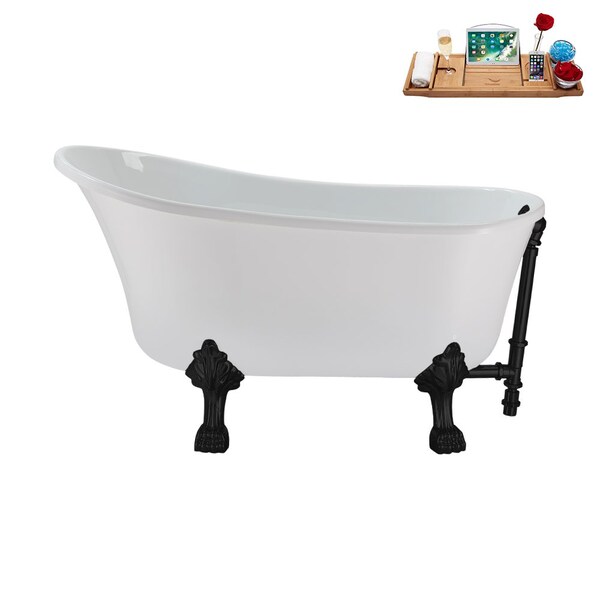 The glossy white Streamline N372BL-BL will upgrade your bathing experience. Measuring at 51 inches, holding up to 55 gal. of water, and featuring matte black clawfeet and a matte black external drain, this tub matches convenience with comfort. Crafted from durable acrylic, this bathtub will remain untouched for many years to come. And to make this even better the clawfoot style of this bathtub makes installation quick convenient.