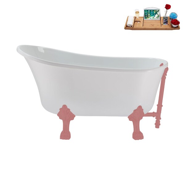 Put stressful days behind you with this luxury 51in Streamline N372PNK-PNK Soaking Clawfoot Tub and Tray with External Drain an all-time classic that has been upgraded for ultimate comfort. Measuring at 51 inches and with a capacity of 55 gallons, the 51in Streamline N372PNK-PNK Soaking Clawfoot Tub and Tray with External Drain is ideal for endless relaxing baths. Made of 100% pure acrylic with a glossy white finish, this upgraded bathtub features a matte pink external drain and matte pink clawfeet.
