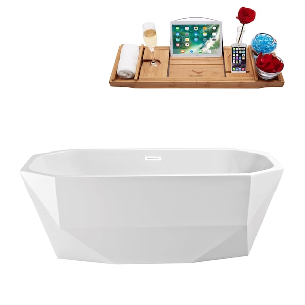 The 59in Streamline N621WH Soaking Freestanding Tub and Tray With Internal Drain is designed to maximize your comfort while adding a luxurious touch to your bathrooms ambiance. This bathtub measures at 59 inches and can hold up to 58 gallons of water just suitable for a relaxing and soothing bathing experience. For maximum longevity, this bathtub is made from durable acrylic material a sturdy material made to withstand scratches, stains, and other signs of wear and tear. And on top of everything, it comes with a glossy white exterior and features a glossy white pop drain that adds a hint of style and grace to the bathtub.