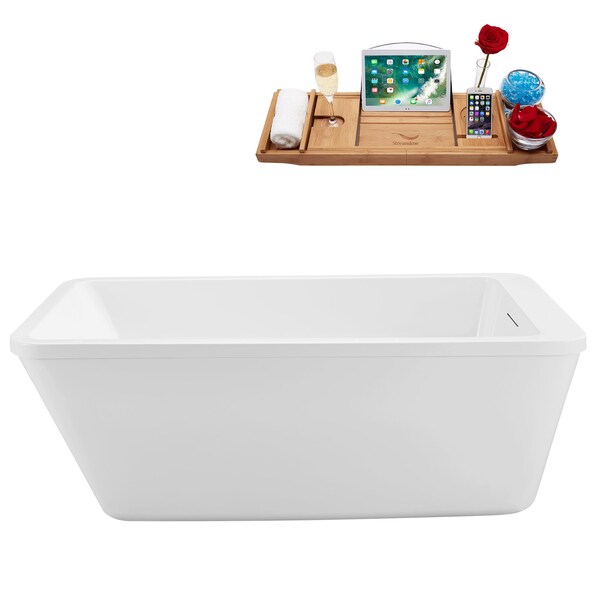 Spoil yourself with a spa in the comfort of your home with the 60in Streamline N250GLD Freestanding Tub and Tray With Internal Drain a classic design that has been upgraded for ultimate comfort. With a capacity of 66 gallons, it is the ideal gift to yourself for endless, soothing baths. It is made from 100% pure acrylic, which gives it a truly modern look. A polished gold pop up drain accompanied by a seamlessly designed overflow delivers a unique look.
