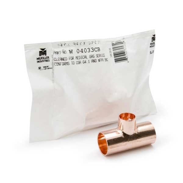 Sweat Fitting Tee, Precleaned Cleaned and Bagged, Application Medical, Fitting Side A Connection Type Cup, Fitting Side B Connection Type Cup, Fitting Side C Connection Type Cup, Fitting Side A Copper Tube Size 3/4 in, Fitting Side B Copper Tube Size 3/4 in, Fitting Side C Copper Tube Size 3/4 in, Fitting Material Cast Bronze, Includes Center Stop Not Applicable, Fitting Side A Tube Outer Diameter 7/8 in, Fitting Side B Tube Outer Diameter 1/2 in, Specific Fitting Shape Reducing Tee