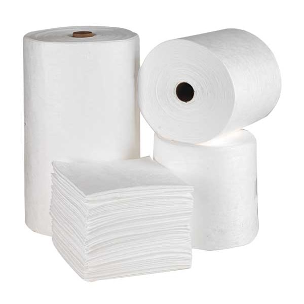 Product Type Sorbent Roll, Fluids Absorbed Oils, For Use With Chemical or Metal Type Oil, Size 32 in x 150 ft, Volume Absorbed per Pkg. 54 gal, Color/Pattern White, Material Polypropylene, Number of Layers 1, Perforated Not Perforated, Perforated Size Not Perforated