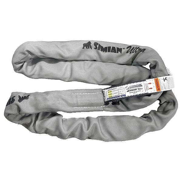 High Performance Roundsling, Sling Core Material Aramid, Sling Sleeve Material Nylon, Sling Length 4 ft, Eye Length Not Applicable, Body Diameter 3 in, Width Under Load 6 in, Vertical Hitch Capacity 125,000 lb, Choker Hitch Capacity 100,000 lb, Basket Hitch Capacity 250,000 lb, Tag Features Encapsulated Tag, Color Gray, Sling Type Type 5, Basket Hitch Capacity @ 30 Degrees 125,000 lb, Basket Hitch Capacity @ 45 Degrees 176,750 lb, Basket Hitch Capacity @ 60 Degrees 216,500 lb