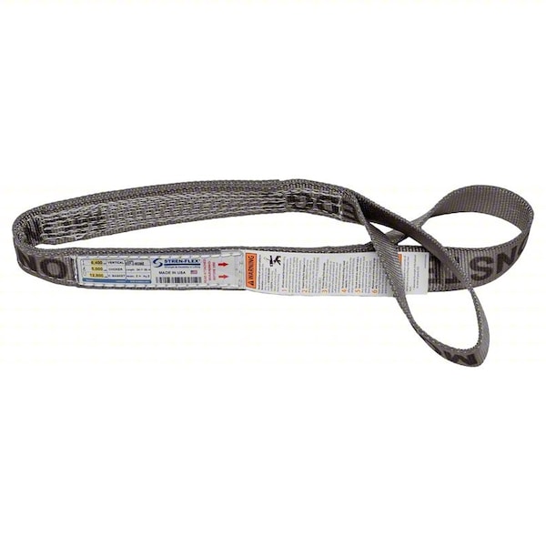 Web Sling, Sling Type Type 3, Sling Material Nylon, Number of Plies 2, Sling Length 4 ft, Eye Length 10 in, Overall Width 2 in, Number of Legs 1, Vertical Hitch Capacity 6,400 lb, Choker Hitch Capacity 5,000 lb, Basket Hitch Capacity 12,800 lb, Hook Attachment Type Not Applicable, Basket Hitch Capacity @ 30 Degrees 6,400 lb, Basket Hitch Capacity @ 60 Degrees 11,100 lb, Tag Features Encapsulated Tag, Color Silver, Thickness 3/8 in, Standards ASME, OSHA