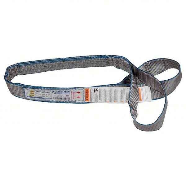 Web Sling, Sling Type Type 3, Sling Material Polyester, Number of Plies 2, Sling Length 8 ft, Eye Length 8 in, Overall Width 1 in, Number of Legs 1, Vertical Hitch Capacity 3,200 lb, Choker Hitch Capacity 2,500 lb, Basket Hitch Capacity 6,400 lb, Hook Attachment Type Not Applicable, Basket Hitch Capacity @ 30 Degrees 3,200 lb, Basket Hitch Capacity @ 60 Degrees 5,500 lb, Tag Features Encapsulated Tag, Color Silver, Thickness 3/8 in, Standards ASME, OSHA