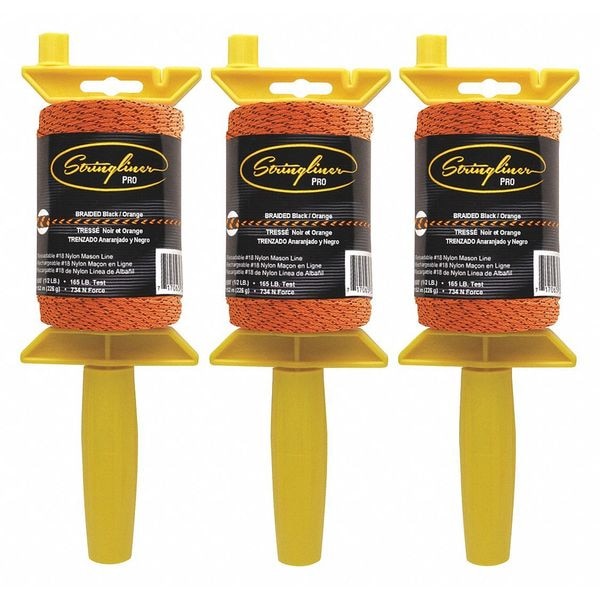 Mason's Line Reel, Color Black/Orange, Line Type Braided, Material Polyethylene, Number of Pieces 3, Overall Diameter 1 in, Overall Length 500 ft, Product Type Mason's Line Reel, Package Quantity 3