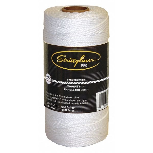 Mason's Line, Color White, Line Type Twisted, Material Nylon, Maximum Tensile Strength 165 lb, Number of Pieces 1, Overall Length 1,080 ft, Product Type Mason's Line Reel