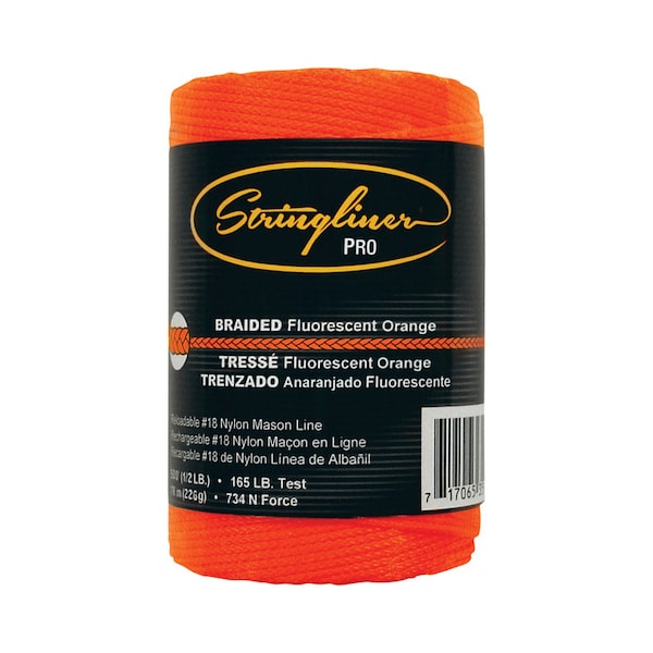 The line has a tensile strength of 165 lbs. and braided property means it won't twist or tangle as easily, it is wound on a 1 inch diameter core and fits Stringliner Pro handles so you can easily switch out rolls of twine. Orange line is bonded, making the line stiffer, stronger and more resistant to wear.