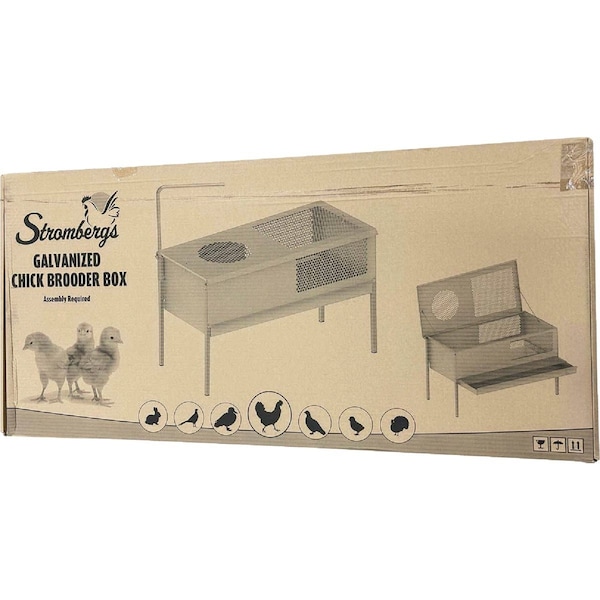 Strombergs Stand Up Chick Brooder is an excellent solution for brooding and raising your chicks. Keep debris off the floor and save space with this innovative brooder design. Chicks can easily be viewed through the perforated steel sides and top making for simple and quick monitoring without lifting the lid. Add an infrared lamp to the convenient built-in lampstand to provide chicks with heating when required. There is plenty of space for all the chick essentials such as waterers feeders or even an additional brooder heat plate (all sold separately). When it comes time for cleaning the brooder has a wire floor system and removable tray. Waste and droppings are passed through the wire floor and are easily cleaned by washing or wiping the removable tray. Assembly required. Walls roof-doors and removable tray are made of galvanized steel sheeting. Its upper and side plates with 12.5 mm perforations allow for an easy interior view and efficient ventilation. All this plus preventing harmful air currents and access by rodents and other vermin. Galvanized wire floor keeps animals out of the removable tray keeping the brooder hygienic and easy to clean. Infrared lamp and bulbs are sold separately.