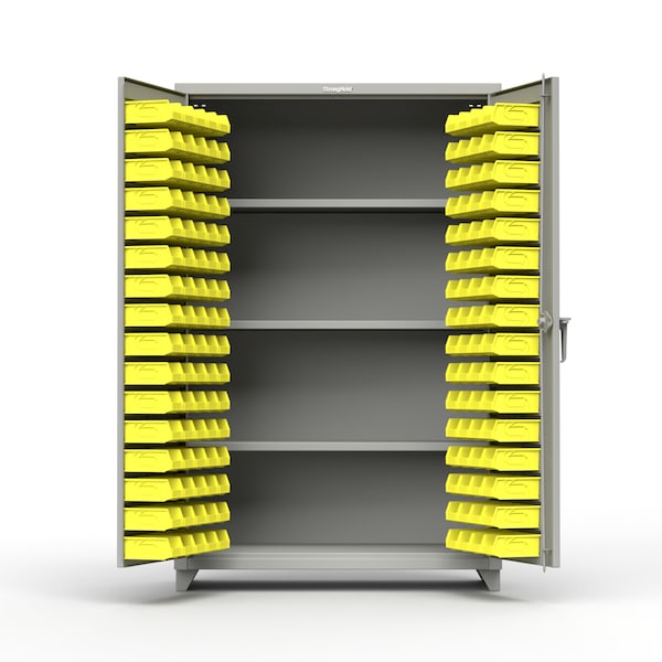 This standard Strong Hold cabinet is now secured by on door access control. With robust adjustable shelves that can withstand 1650 lbs each, this 12 gauge cabinet is prepared to store your heavy duty items. The electronic keypad can be accessed by up to 20 custom user codes with no need for additional software. The codes allow for multiple users to capitalize on the benefits of keyless entry. This lock is made of tough and robust cast steel in conjunction with a lock plate tab to ensure mechanical durability. This cabinet comes fully assembled with the digital lock pre-installed, batteries included.