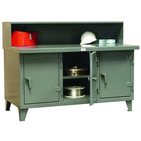 Cabinet Workbench, Top Material Steel, Color Gray, Non-Metal Top Thickness Not Applicable, Number of Doors 3, Number of Drawers 0, Number of Shelves 3, Overall Depth 30 in, Overall Height 46 in, Overall Load Capacity 4,800 lb, Overall Width 72 in, Top Metal Material Gauge 7 ga, Included Components Lower Shelf, Riser, Assembly Fully Assembled, Door Type Standard/Hinged, Frame Material Steel, Lock Type Padlockable, Maximum Drawer Load Capacity Not Applicable, Maximum Shelf Load Capacity 1000 lb