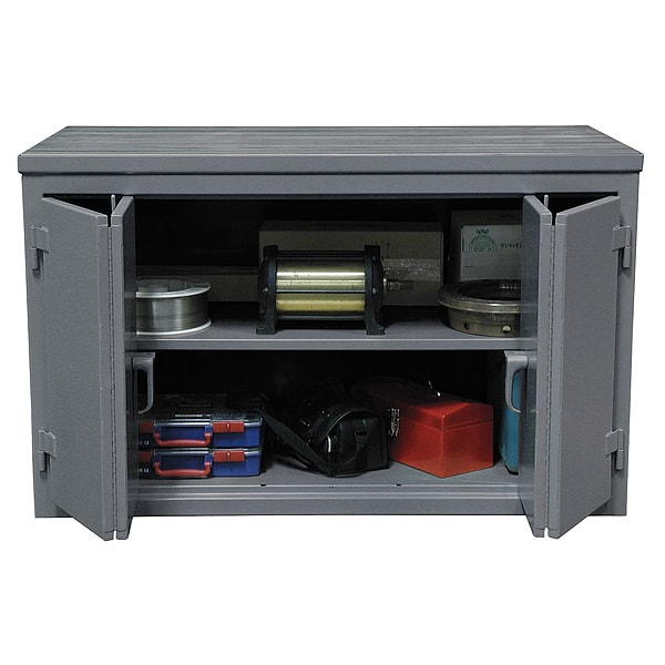 Cabinet Workbench, Top Material Butcher Block, Color Gray, Non-Metal Top Thickness 1 3/4 in, Number of Doors 2, Number of Drawers 6, Number of Shelves 1, Overall Depth 36 in, Overall Height 37 in, Overall Load Capacity 4,800 lb, Overall Width 72 in, Top Metal Material Gauge Not Applicable, Included Components Lower Shelf, Assembly Fully Assembled, Door Type Bi-Folding, Frame Material Steel, Maximum Shelf Load Capacity 1525 lb